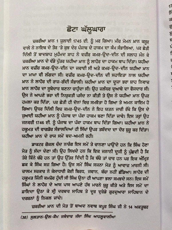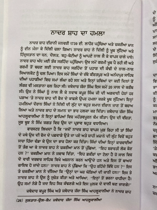 ਸੁਲਤਾਨ-ਉਲ-ਕੌਮ ਜਥੇਦਾਰ ਜੱਸਾ ਸਿੰਘ ਆਹਲੂਵਾਲੀਆ ~ ਕਿਤਾਬ