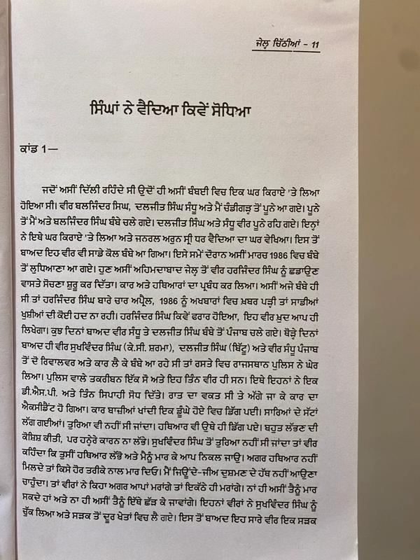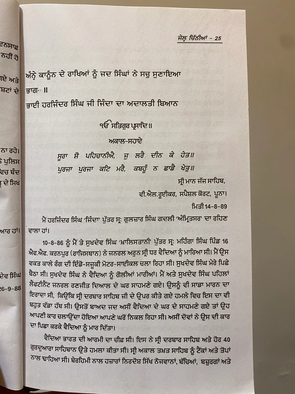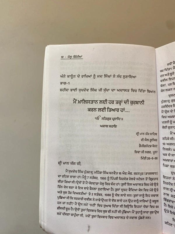 ਭਾਈ ਹਰਜਿੰਦਰ ਸਿੰਘ ਜਿੰਦਾ - ਭਾਈ ਸੁਖਦੇਵ ਸਿੰਘ ਸੁੱਖਾ ਦੀਆਂ ਜੇਲ੍ਹ ਚਿੱਠੀਆਂ ..